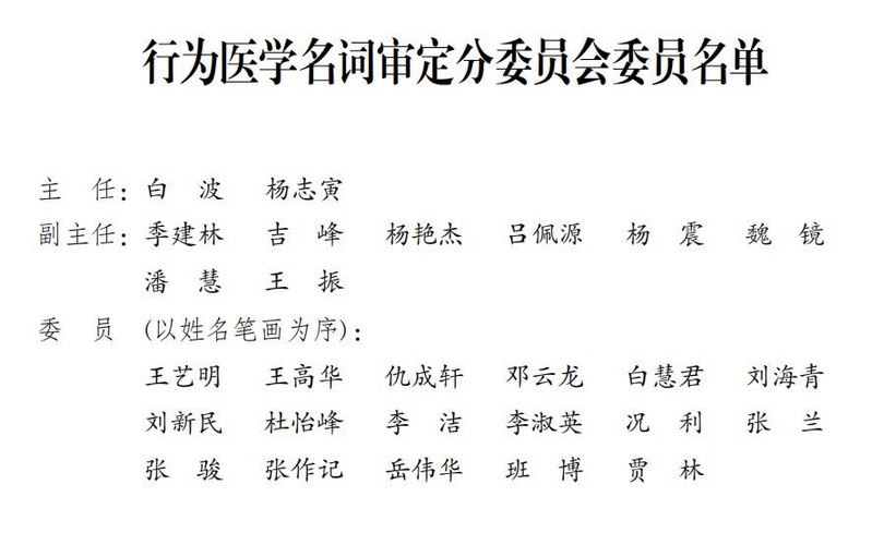 经医学名词审定委员会行为医学名词审定分委员会审定,全国科学技术名词审定委员会批准,行为医学名词于2022年9月正式公布。