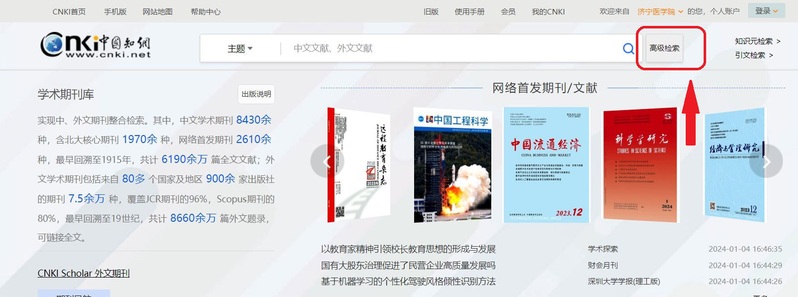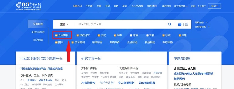 1.进入中国知网首页(www.cnki.net),点击“学术期刊”,进入学术期刊库。