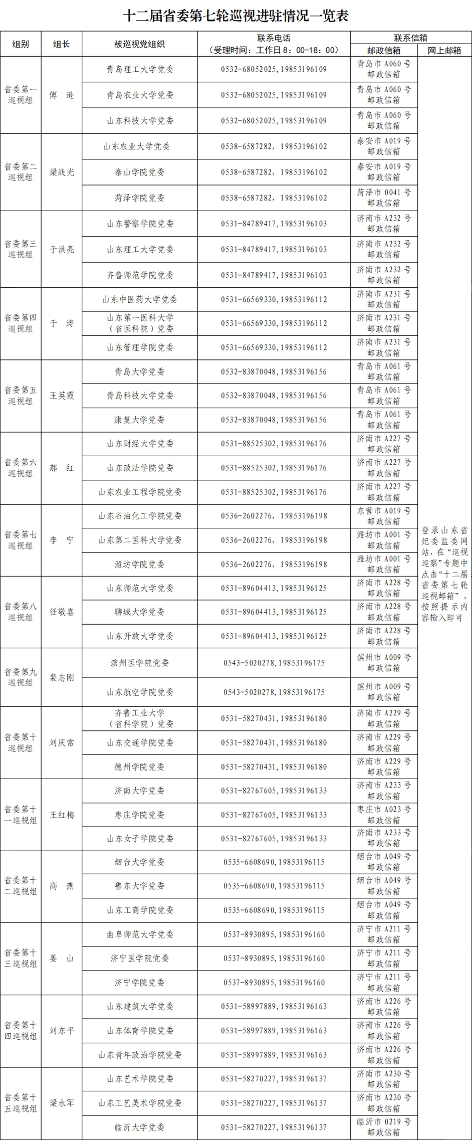 根据省委统一部署,截至322日,十二届省委第七轮巡视完成进驻工作。15个省委巡视组将对44所省属本科高校党委开展常规巡视。